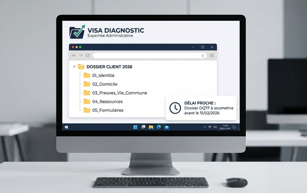 L’annonce d’une OQTF (Obligation de Quitter le Territoire Français) impose une rigueur absolue. Face à la stricte application des délais par la Préfecture, l’improvisation est exclue. Chez Visa-Diagnostic, nous traitons la structure de votre dossier comme une priorité technique. Notre objectif : vérifier que chaque pièce de votre dossier administratif est classée et conforme aux exigences avant toute démarche.